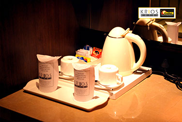 In room Amenities: Guests of the hotel can make use of the following room facilities: Iron/ironing boards, mobile chargers, Hair Dryer, Shoe Shine Machine, etc.. Tea and coffee maker is fully stacked and are available complimentary with 1 bottle of water per room per day.