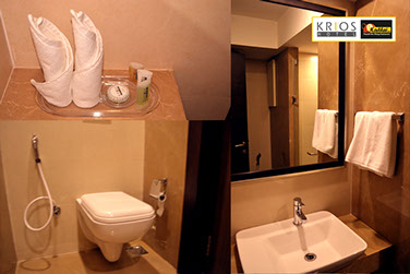 Hotel Krios has 24 well-appointed, Nice and Luxurious Roomswith wooden flooring for a pleasant and wonderful stay. Each Standard Room measures approx. 225 sq ft. and Deluxe Rooms 275 Sq. ft.. Hotel feature premium bedding with complementary extra towels and bedding items. Bathrooms are spacious, made with Italian marble, and have international brand bath and sanitary fittings with Hot and Cold Power Showers.